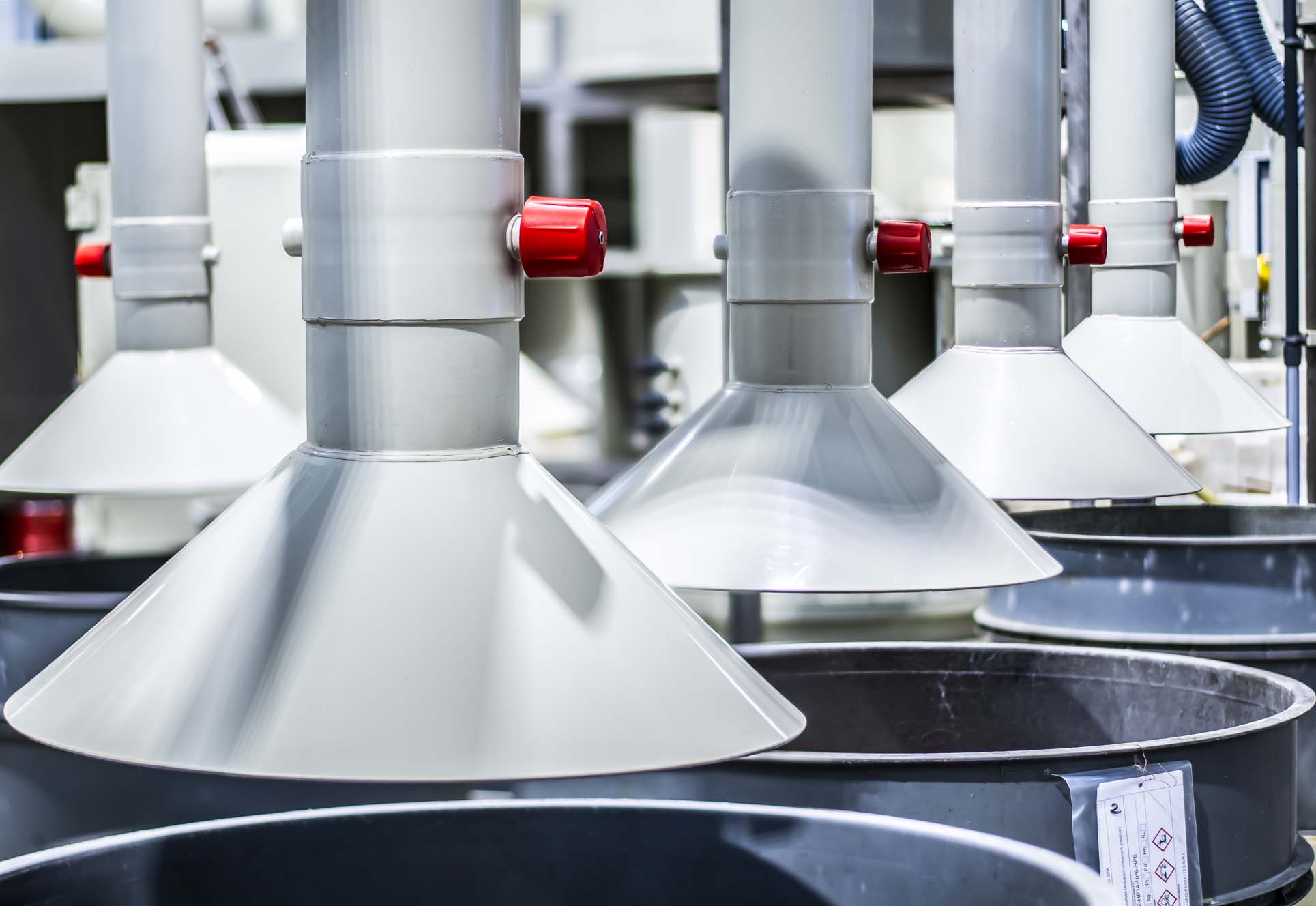 - Movimentación, gestión y eliminación de residuos, incluyendo disoluciones, tratamientos químicos/físicos, recuperación de residuos de galvanoplastia, etc.